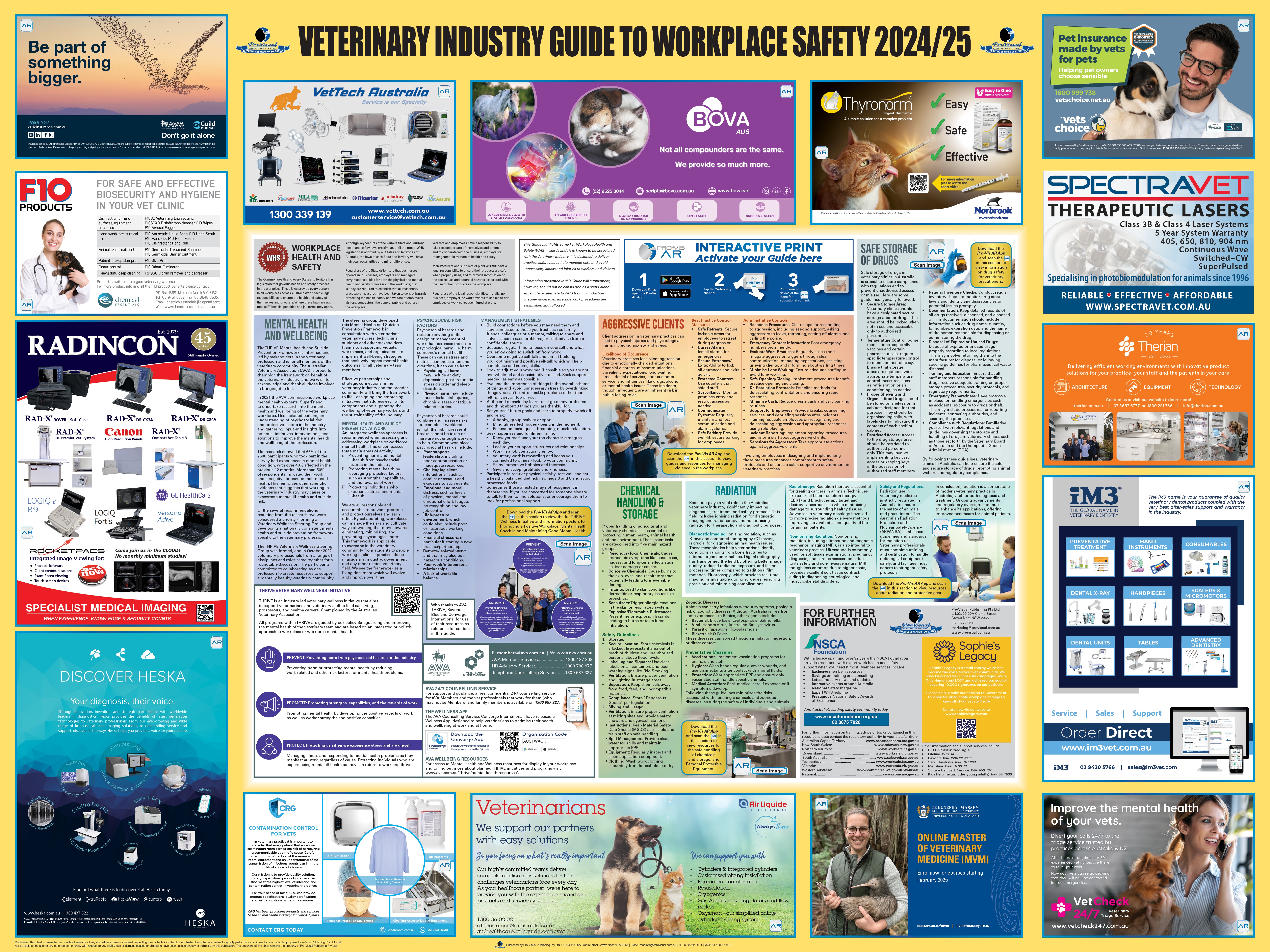 The Veterinary Industry Guide to Workplace Safety 2024/25 will be distributed free of charge to veterinary practices across Australia. It will also be available in an interactive digital format through Pro-Visual Publishing’s mobile app, offering veterinary professionals’ easy access to the guide and its augmented reality features.